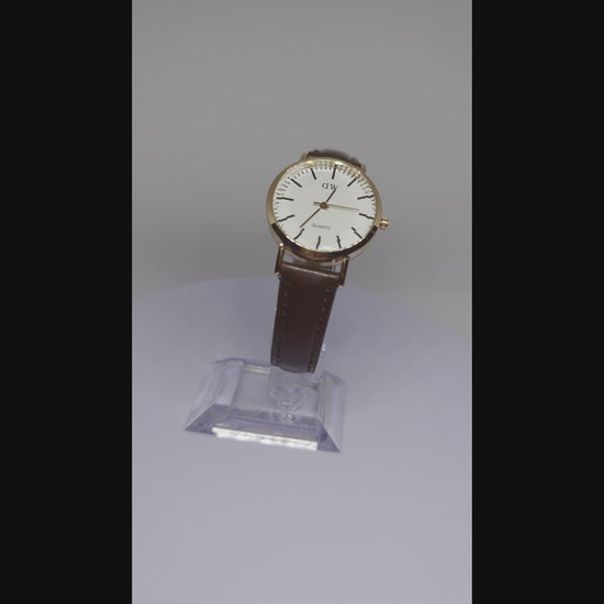 Classic Watch with White Dial & Brown Leather Strap