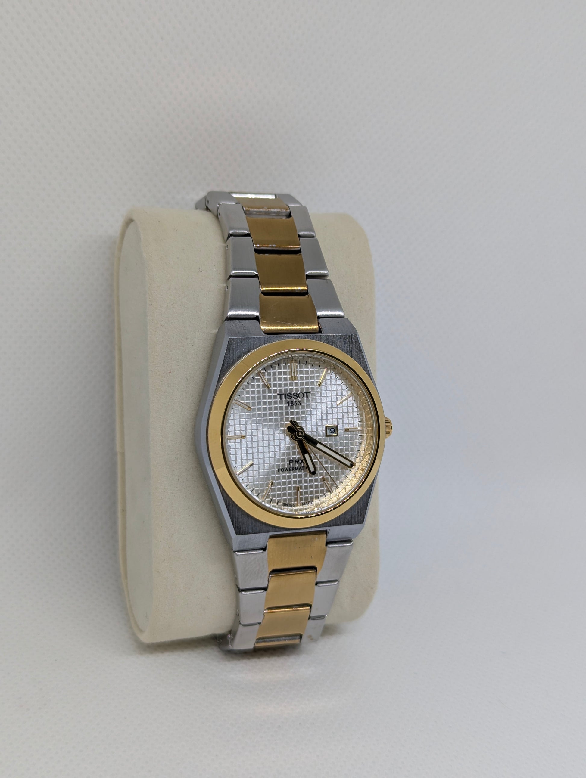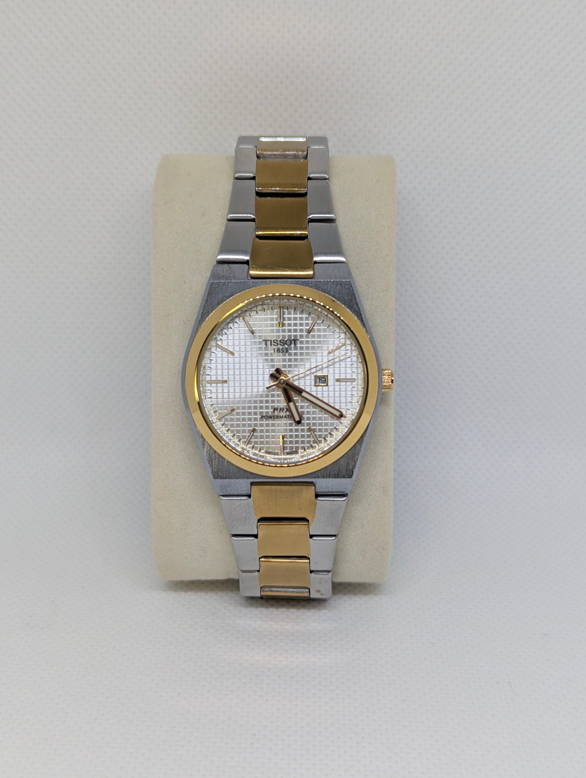 Ladies Two Tone Automatic, White Textured Dial, Gold Bezel & Integrated Bracelet