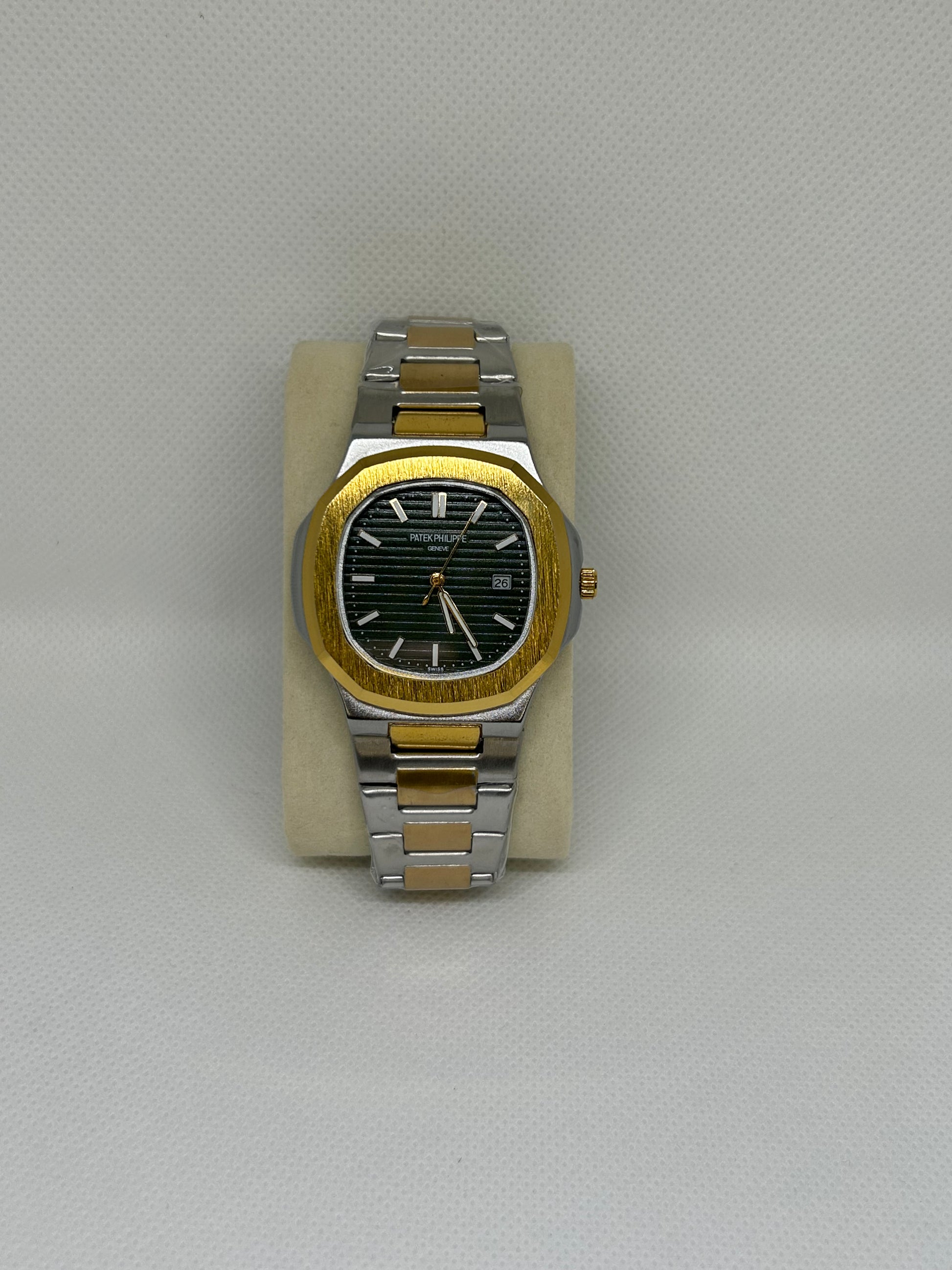 Men’s Two Tone Steel Watch with Green Textured Dial