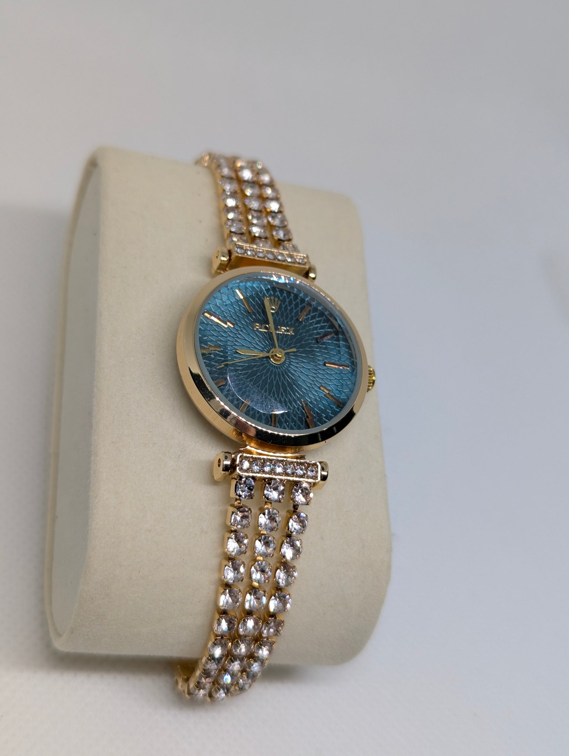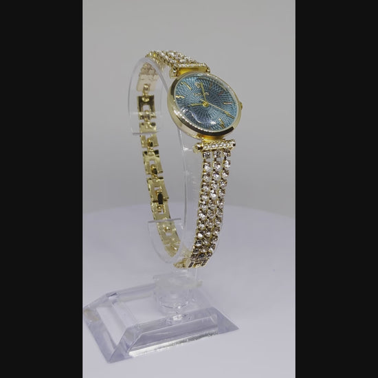 Ladies Gold Watch with Multi Textured Dial & Crystal Bracelet