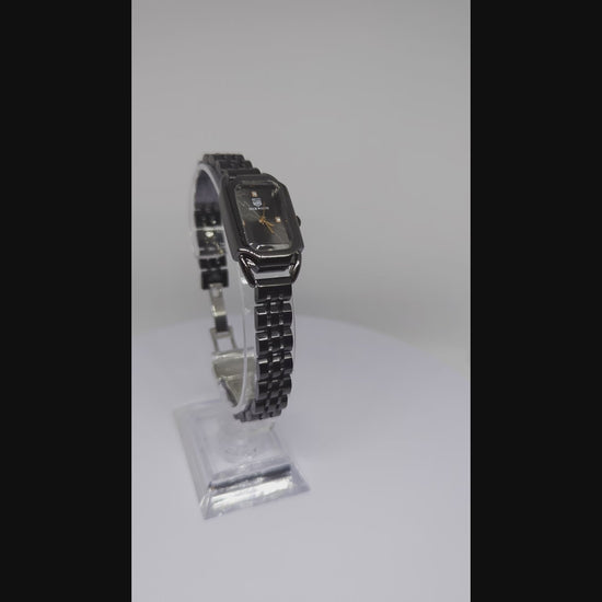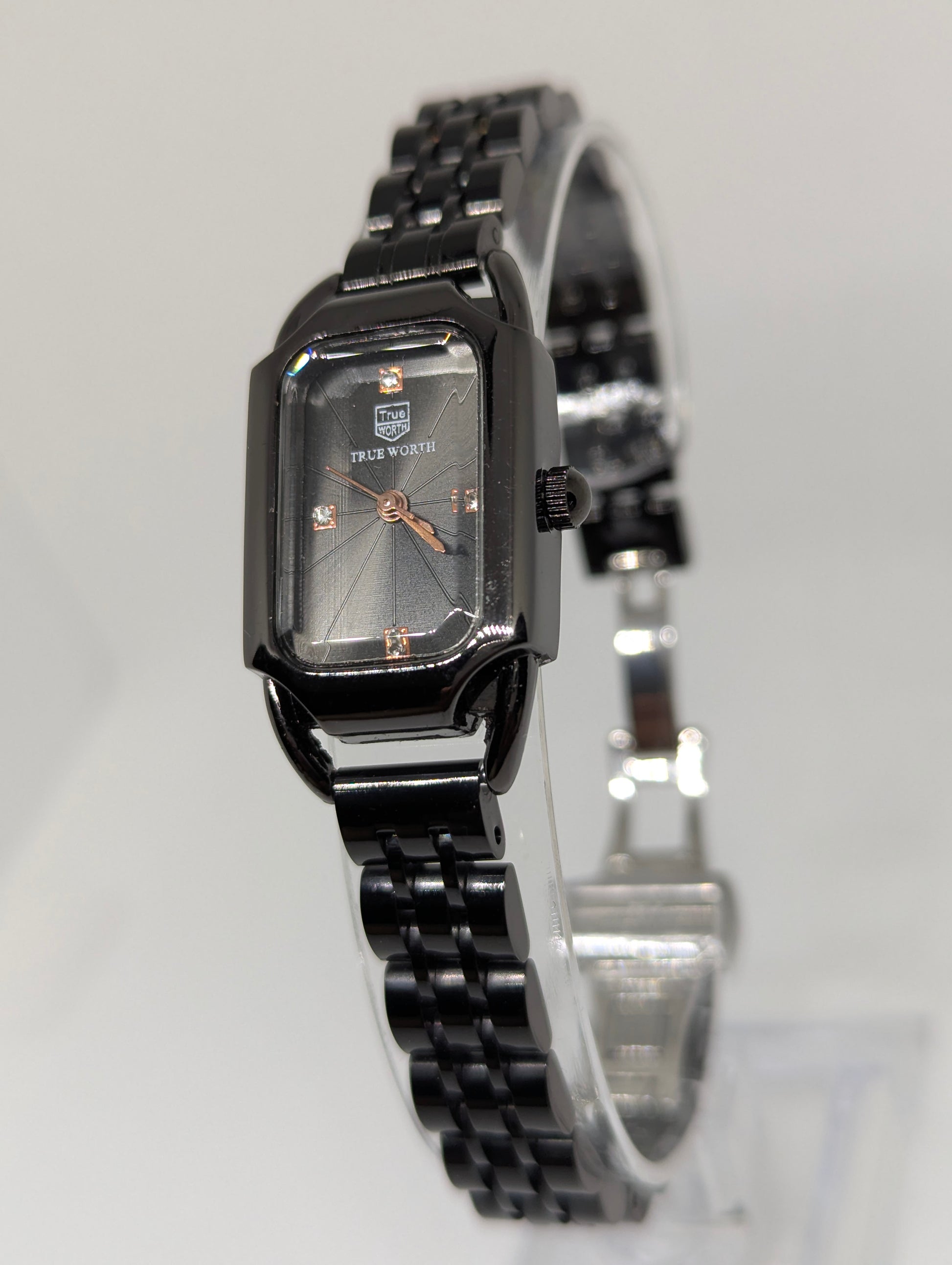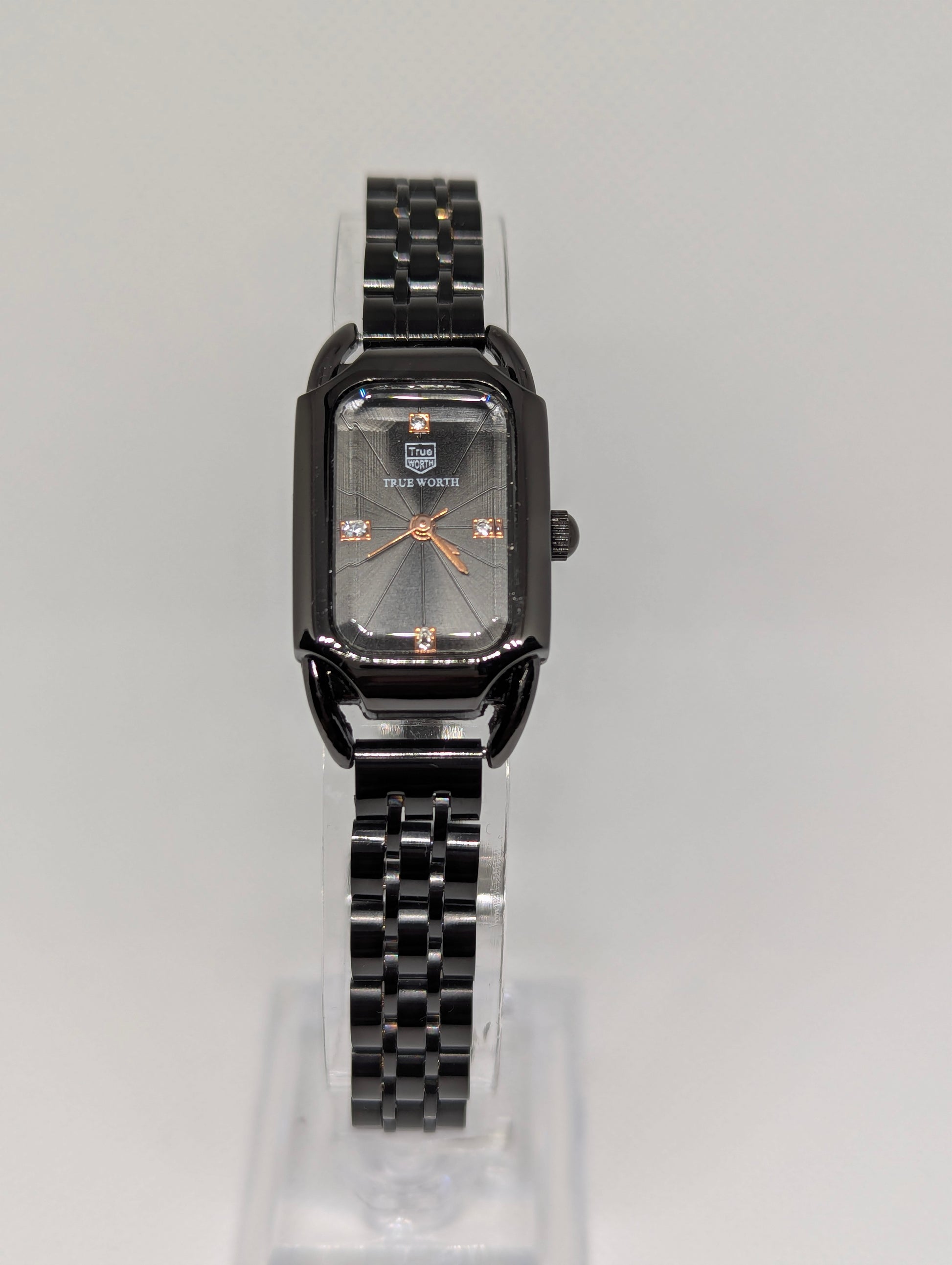 True Worth Black Ceramic Ladies Watch with Rectangular Dial
